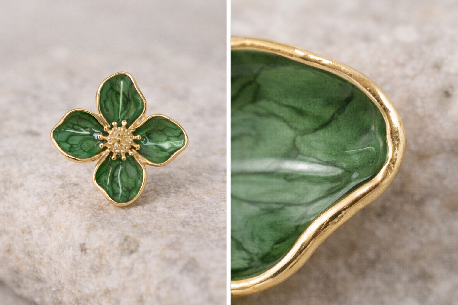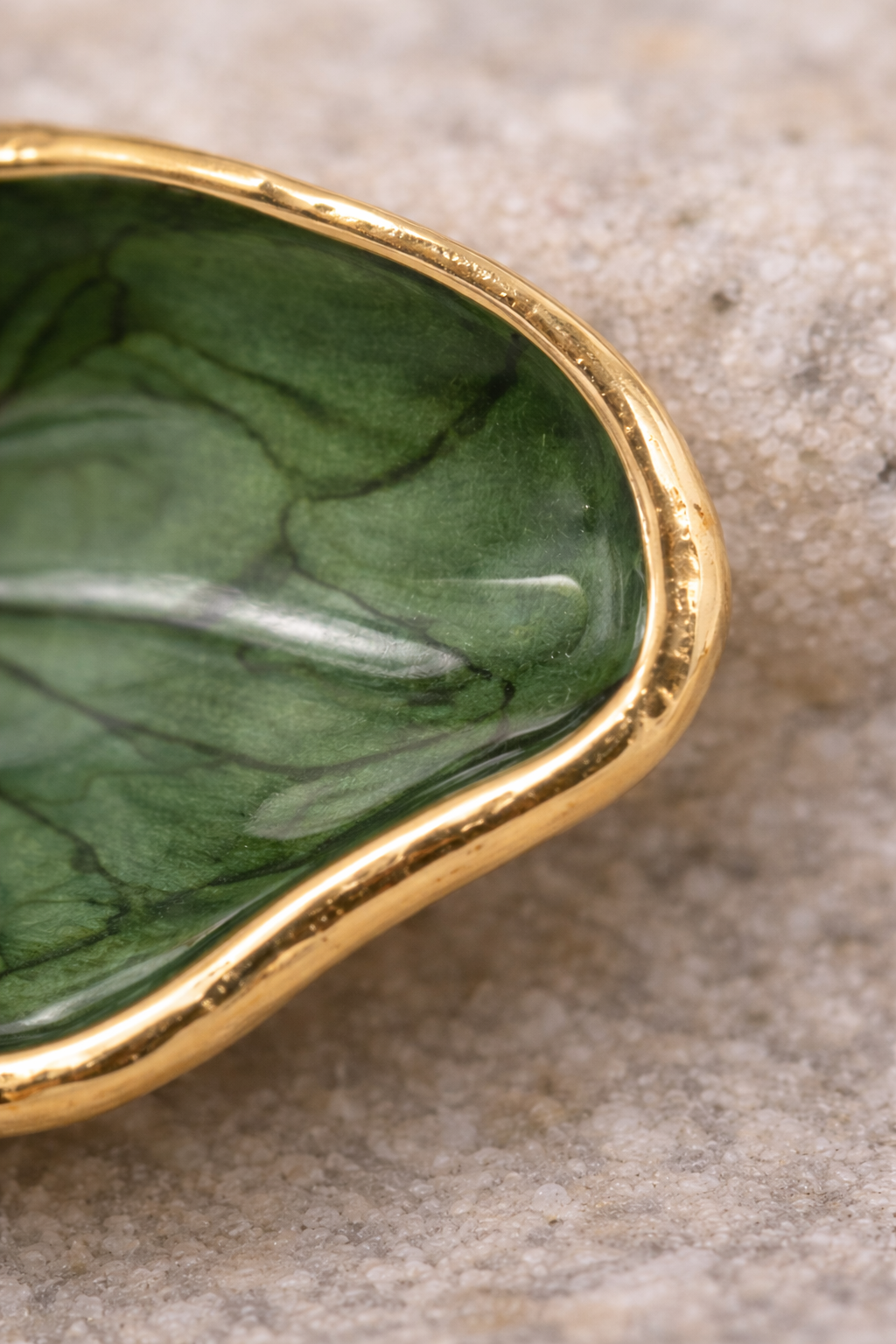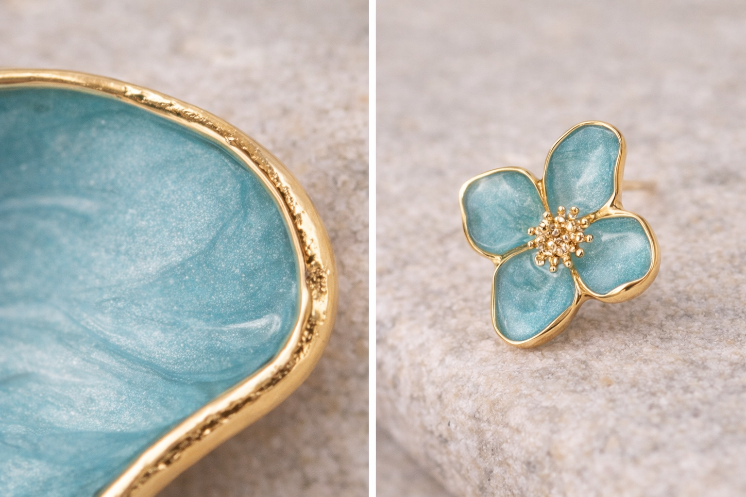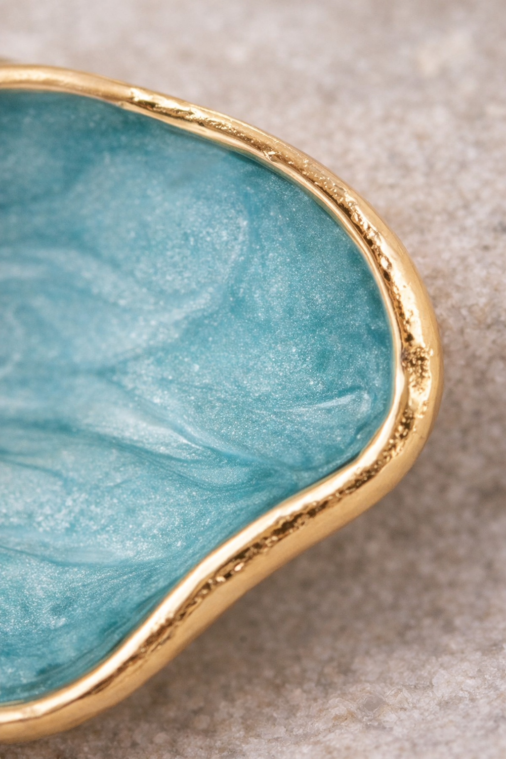 El colgante, pequeño y equilibrado, está trabajado en metal de acabado dorado cálido, con un brillo suave y controlado que evita reflejos excesivos. Su superficie esmaltada aporta profundidad de color y una sensación visual rica, mientras que los bordes definidos y pulidos transmiten precisión y cuidado en cada detalle.